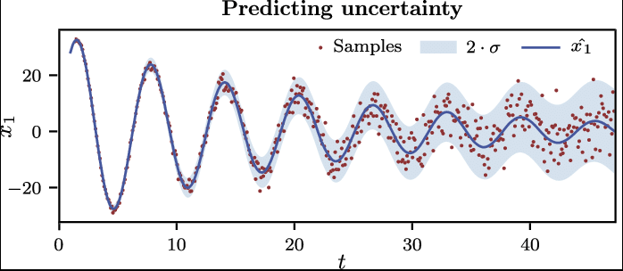 In conclusion, the vanilla MSE loss can only capture the mean value, which is the blue sine curve in the image below. In other hand, the proposed loss will capture both mean value and the uncertainty which is the blue shadow area in the image below. It help us know how confidence the model is about their prediction